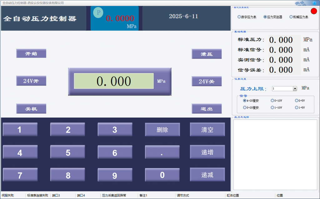 產品內置高精度壓力傳感器,能夠快速、精準地感知氣體壓力的細微變化,并將其轉換為電信號實時反饋至控制系統??刂葡到y采用先進的 PID 算法,依據傳感器反饋的數據,對氣體壓力進行智能、動態調節,確保輸出壓力能夠迅速、穩定地達到預設值。在科研實驗、工業檢測等對氣體壓力控制要求嚴苛的領域,本產品憑借其卓越的精準度與穩定性,能夠為各類氣體壓力相關的實驗與測試工作提供可靠保障,助力實現高效、精準的壓力控制目標。